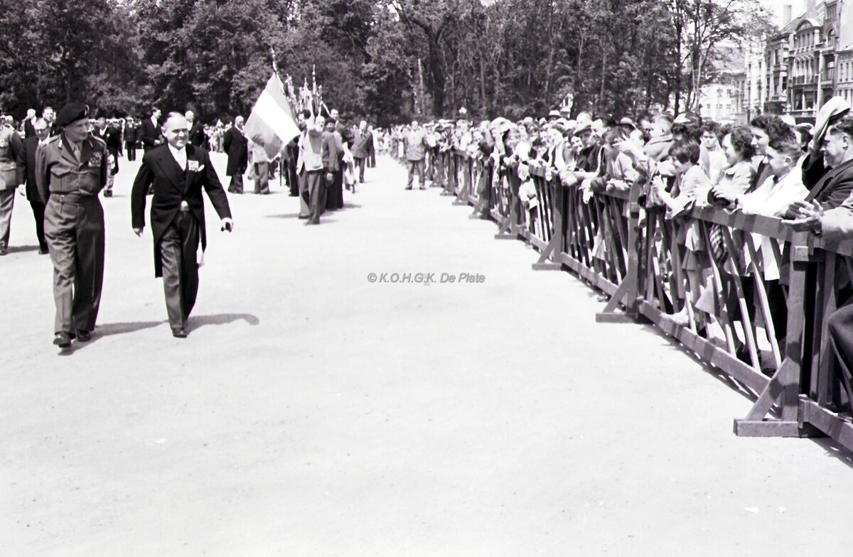 Veldmaarschalk MONTGOMERY en burgemeester Adolf VAN GLABBEKE op het Canadaplein.