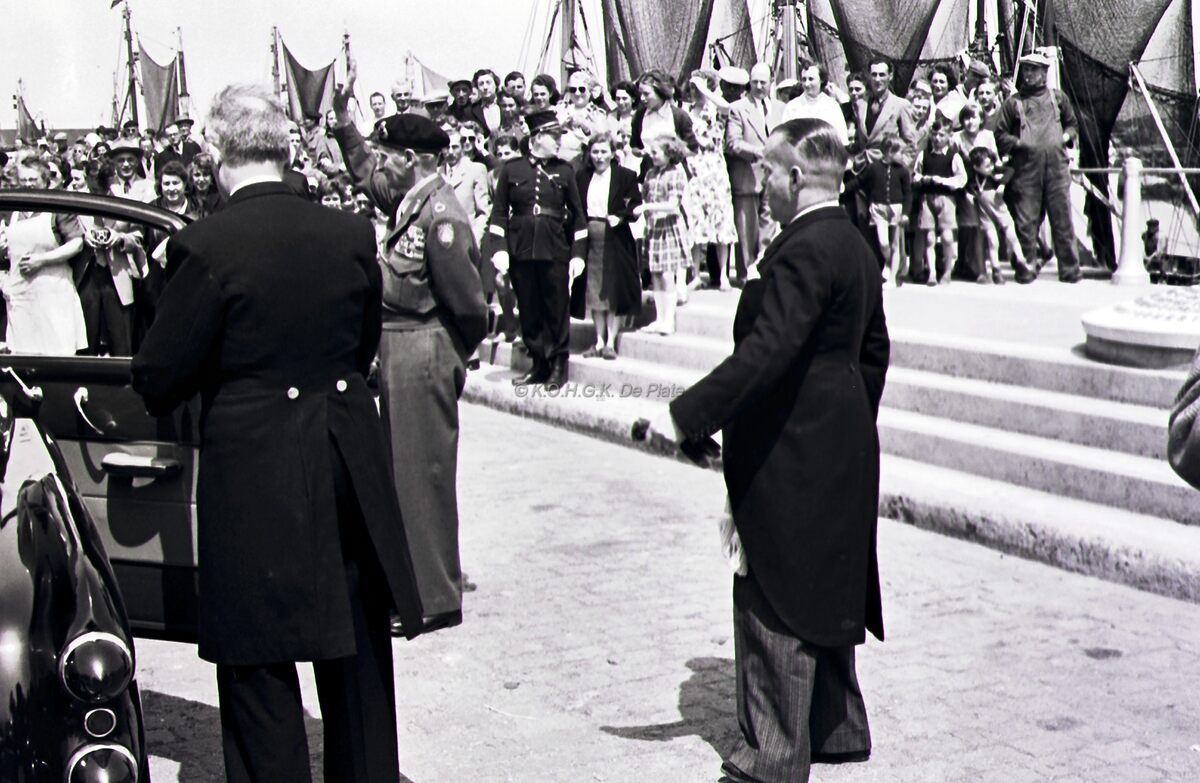 Veldmaarschalk MONTGOMERY en burgemeester Adolf VAN GLABBEKE op de Visserskaai.