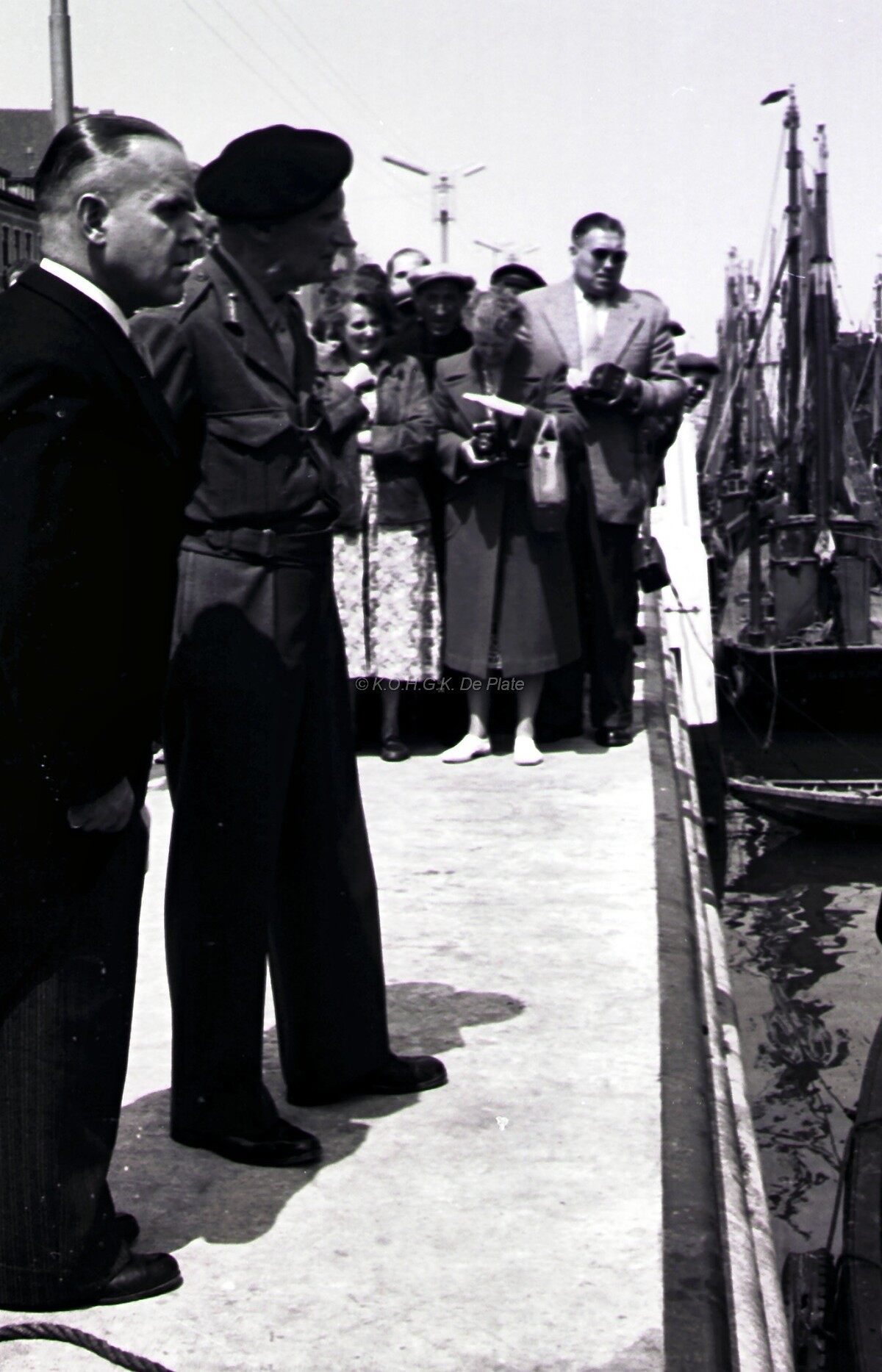 Veldmaarschalk MONTGOMERY en burgemeester Adolf VAN GLABBEKE op de Visserskaai nabij het Montgomerydok.