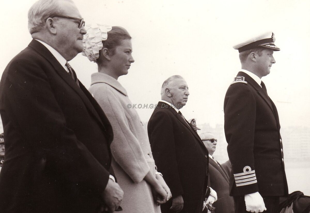 Intrede van Prins Albert en Prinses Paola te Oostende,bij hen staan Achiel VANACKER,minister van (?) en P.W. SEGERS,minister van defensie.