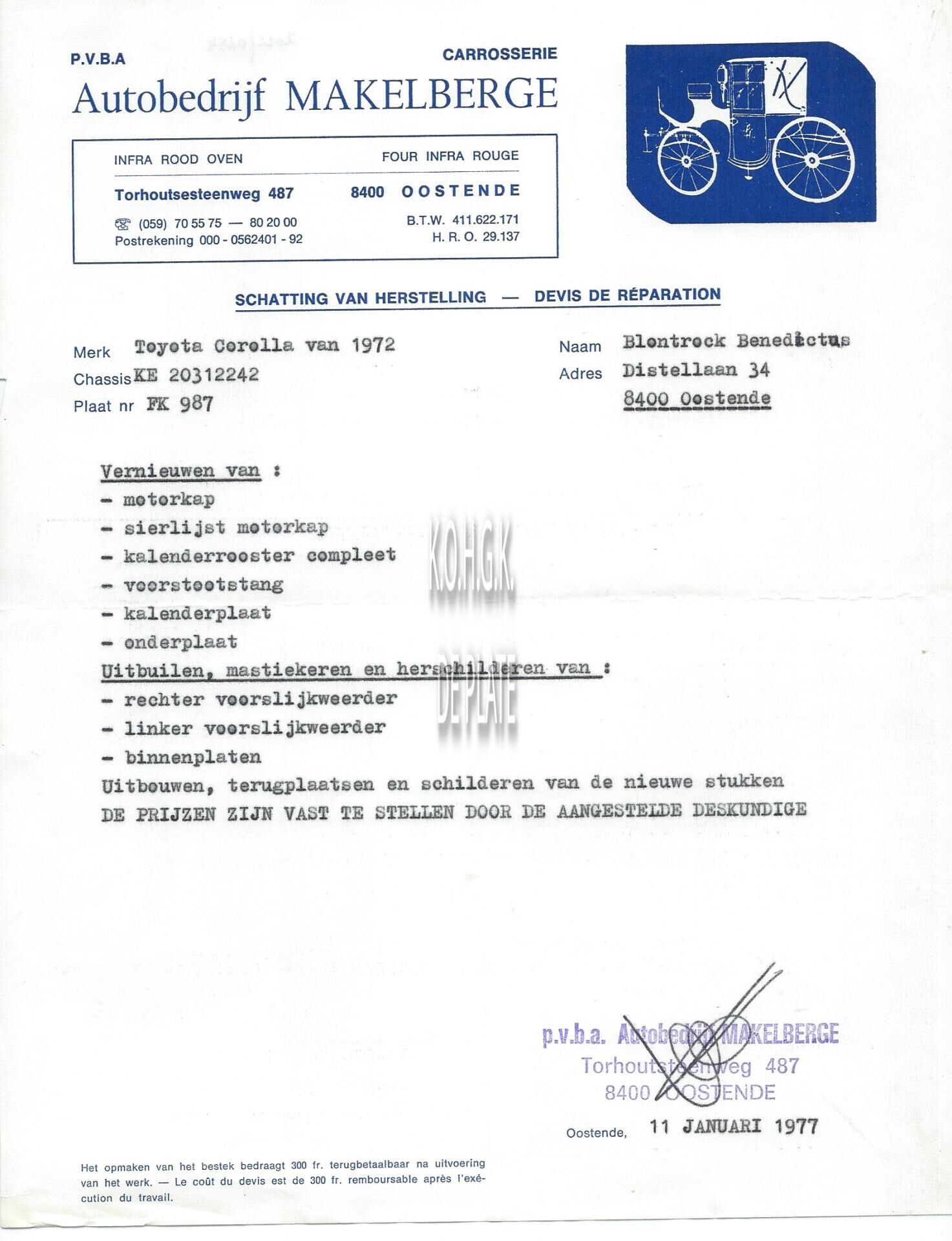 Trefwoorden HANDEL ; OFFERTES AUTOBEDRIJF MAKELBERGE (GARAGE CARROSSERIE) VERVOER ; CARROSSERIEBEDRIJVEN Plaatskenmerk ARCHIEF 110 ARCHIEFDOOS HANDEL Inventarisnummers 2022/0254 11/ 01/ 1977 Herkomst AANKOOP Print
