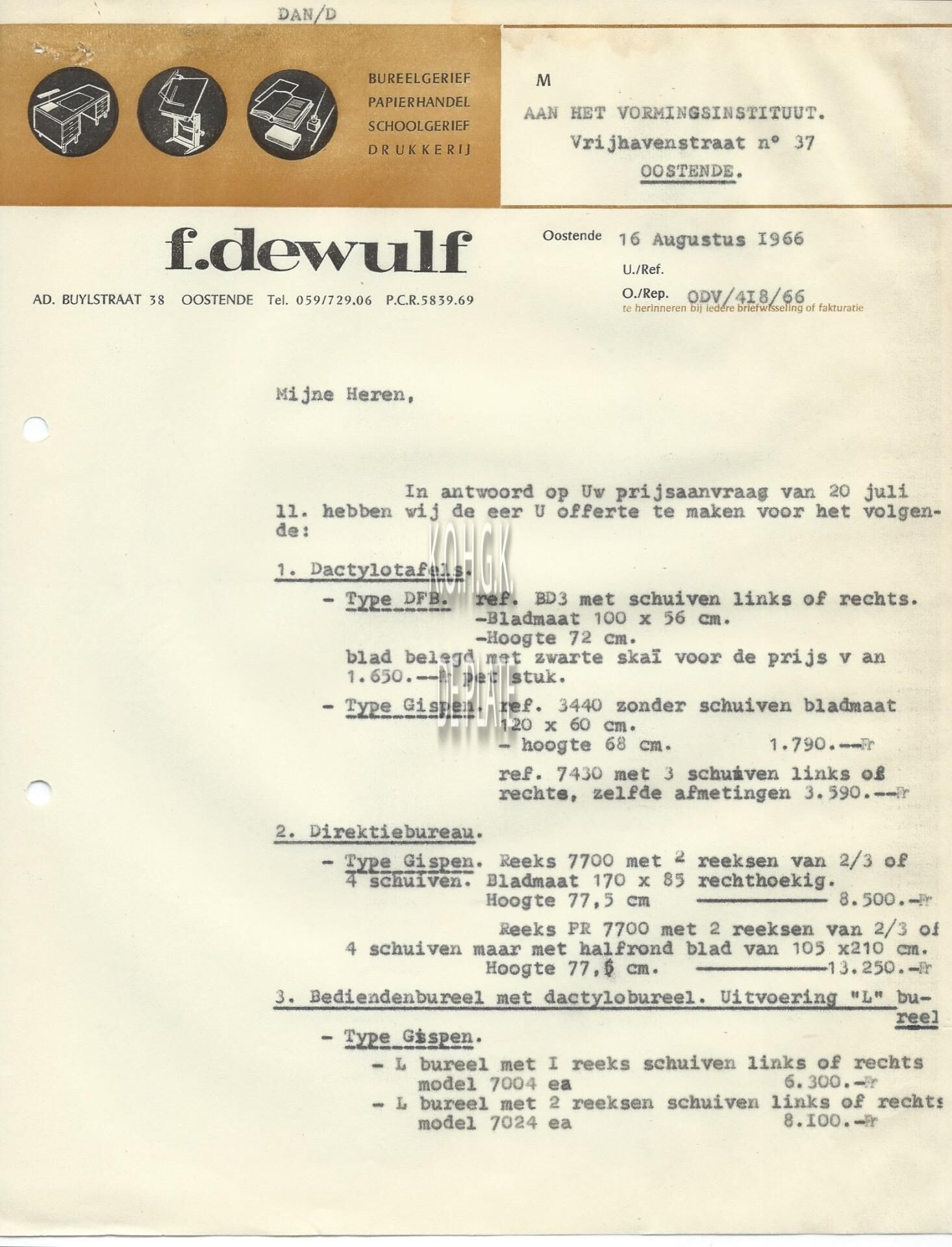 Trefwoorden HANDEL ; OFFERTES FIRMIN DEWULF (DRUKKERIJ PAPIERHANDEL) ADOLF BUYLSTRAAT Plaatskenmerk ARCHIEF 110 ARCHIEFDOOS HANDEL Inventarisnummers 2022/0110 16/ 08/ 1966 Herkomst AANKOOP Print