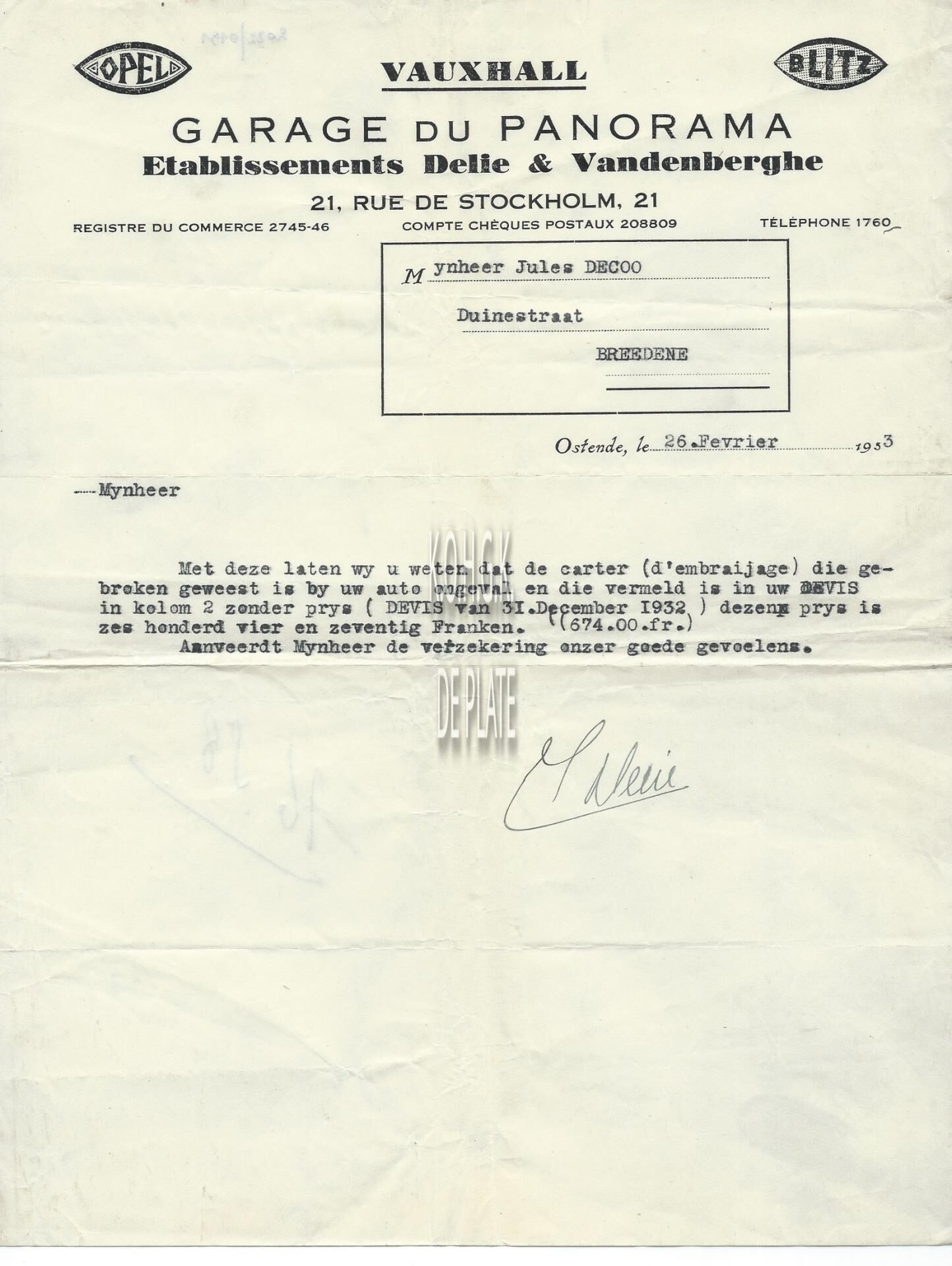 Omschrijving Opel - Vauxhall - Bliz Trefwoorden HANDEL ; OFFERTES GARAGE DU PANORAMA DELIE EN VANDENBERGHE (GARAGE) Plaatskenmerk ARCHIEF 110 ARCHIEFDOOS HANDEL Inventarisnummers 2022/0191 26/ 02/ 1933 Herkomst AANKOOP Print