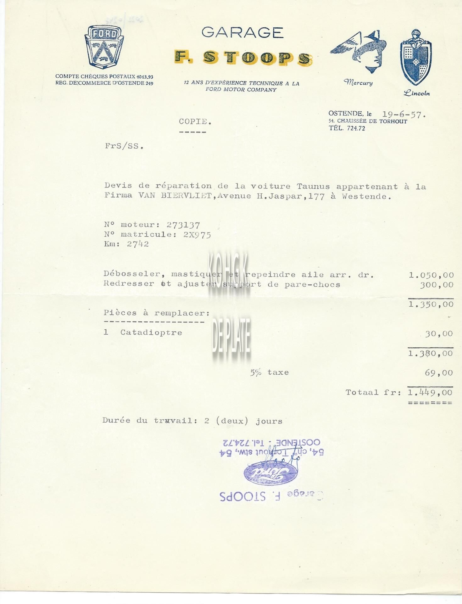 Offerte : Garage F. Stoops. Torhoutsesteenweg 54, Oostende