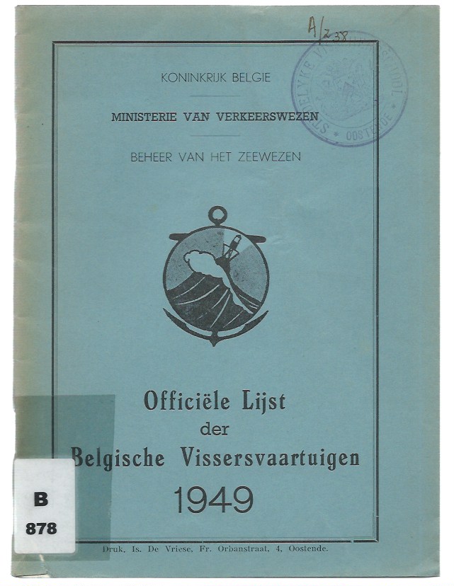 Omschrijving Beschikbaar in pdf Trefwoorden VISSERSVAARTUIGEN VISSERSVAARTUIGEN ; BELGIË ; OFFICIËLE LIJSTEN Plaatskenmerk B878 Inventarisnummers 2008/0019 1949 Auteurs Anoniem Plaats uitgave Oostende Uitgever De Vriese Aantal pagina's 56 Instelling Ministerie van Verkeerswezen. Bestuur van het Zeewezen Bestanden B878.pdf Print