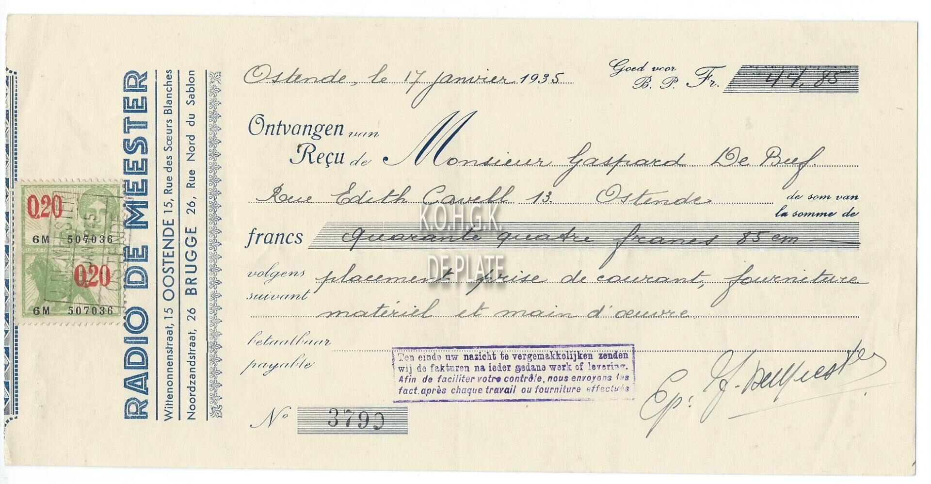 Trefwoorden HANDEL ; ONTVANGSTBEWIJZEN RADIO DE MEESTER (RADIOHANDEL) WITTENONNENSTRAAT Plaatskenmerk ARCHIEF 110 ARCHIEFDOOS HANDEL Inventarisnummers 2014/4464 17/ 01/ 1935 Herkomst HOSTYN NORBERT Print