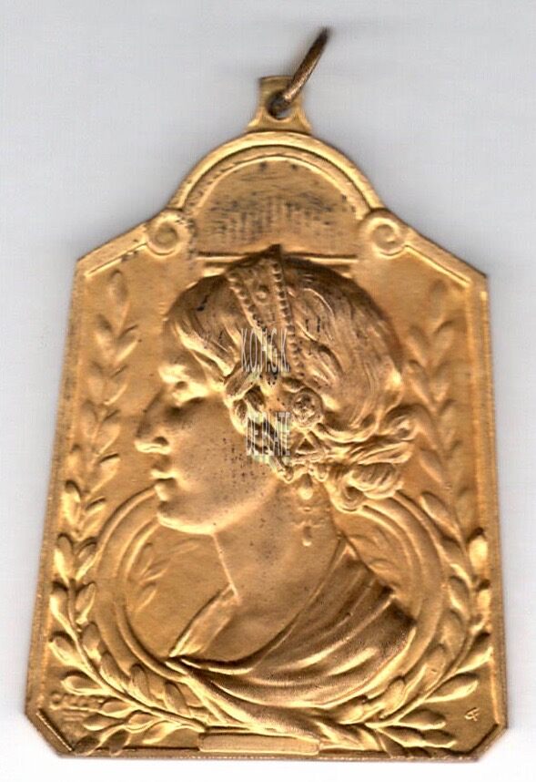 Op de voorzijde : vrouwenhoofd in profiel kijkend naar links (muze Calliope), omhuld met lauriertakken, de afbeelding centraal boven haar hoofd is niet duidelijk, rechtsonder een monogram F, linksonder CALLIOPE