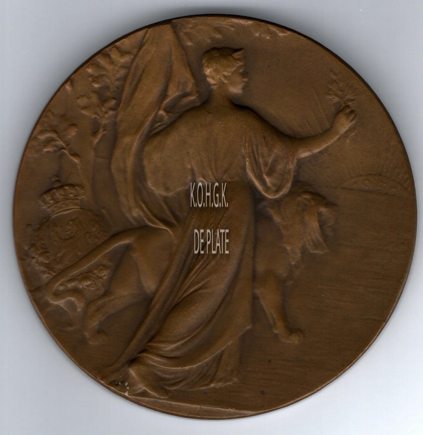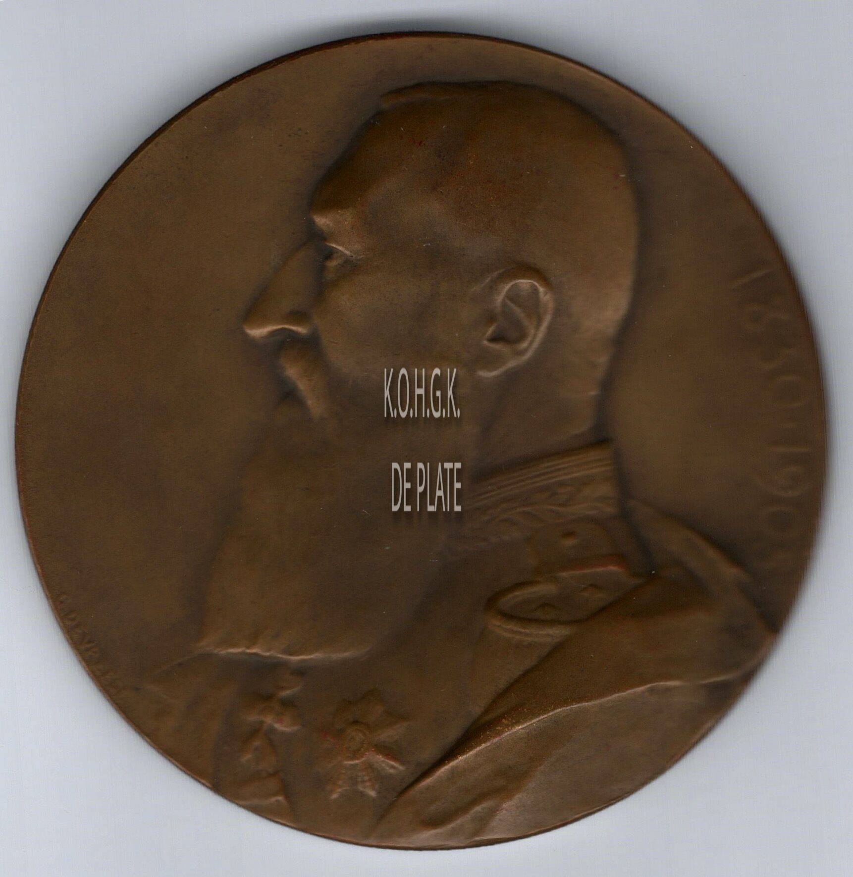 Op de voorzijde : Het borstbeeld van koning Leopold II in uniform met eretekens, rondom rechts 1830-1905, linksonder gesigneerd G. DEVREESE