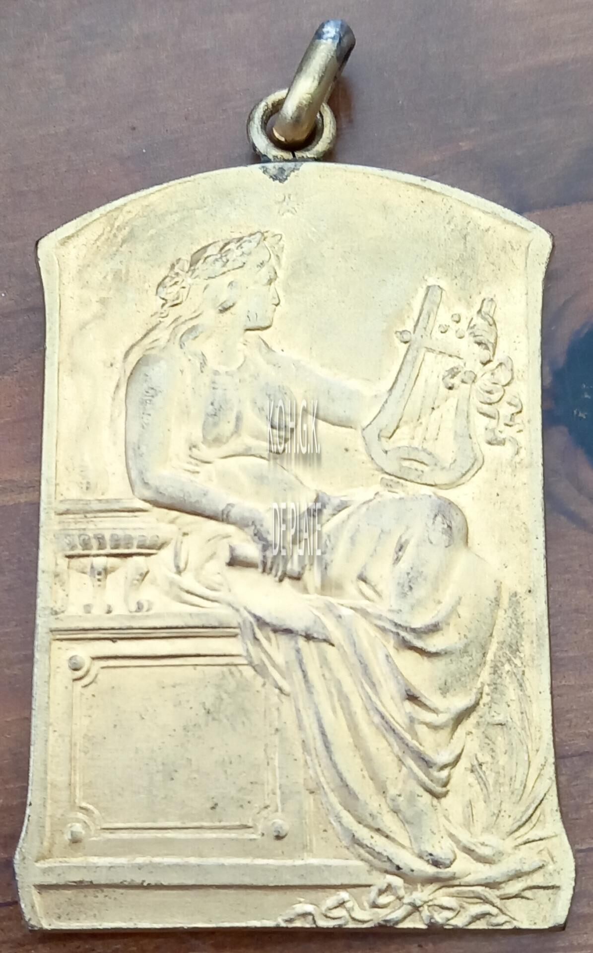 Op de voorzijde : de muze Terpsichore gezeten op een troon, met een lier in de linkerhand en boekrol in de rechterhand, haar rechterarm rustend op een zuil, rechtsonder palmbladeren samengestrikt. Boven haar hoofd een stralende ster