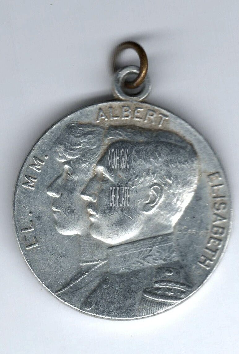 Op de voorzijde : De gekoppelde borstbeelden van Albert I in uniform en Elisabeth met halssnoer naar links gericht, rondom links LL. MM., rondom boven ALBERT, rondom rechts ELISABETH, rechts horizontaal L. CARIAT