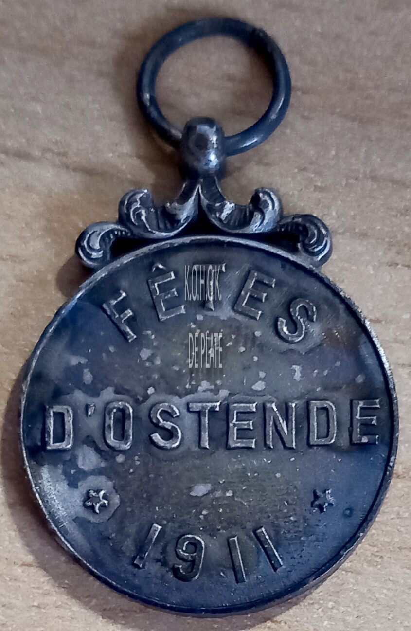 Op de keerzijde : rondom boven FÊTES, horizontaal D’OSTENDE, rondom onder ★ 1911★