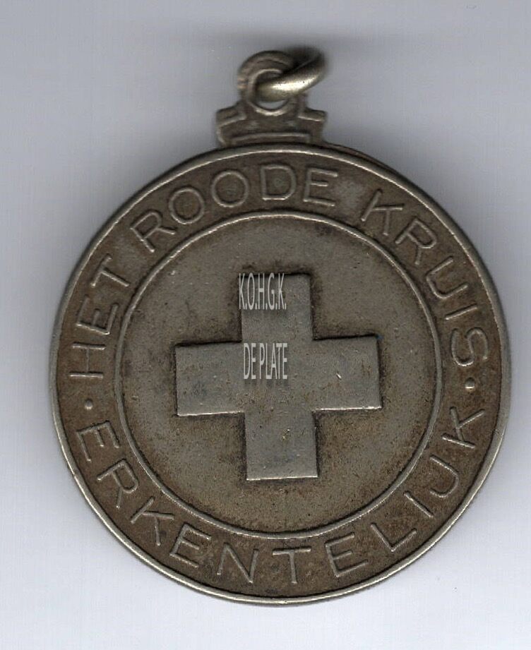 Op de keerzijde : tussen twee geprofileerde randen rondom HET ROODE KRUIS . ERKENTELIJK, centraal een kruis