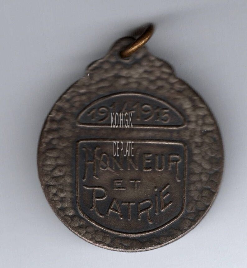 Op de keerzijde : in een veld boven horizontaal 1914-1915, in een veld eronderhorizontaal HONNEUR / ET / PATRIE