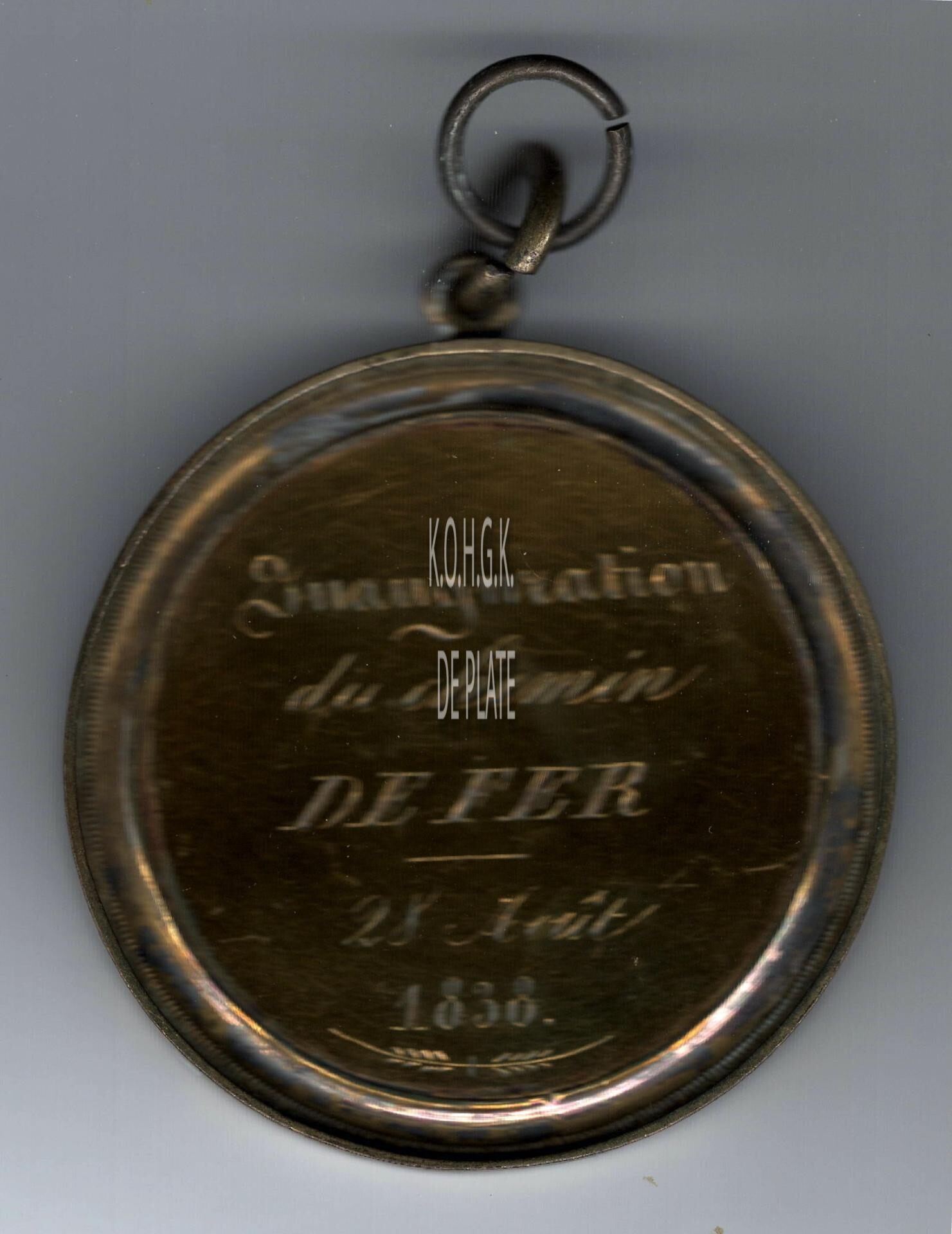 Op de keerzijde : horizontaal INAUGURATION / DU CHEMIN / DE FER / 28 AOUT / 1838
