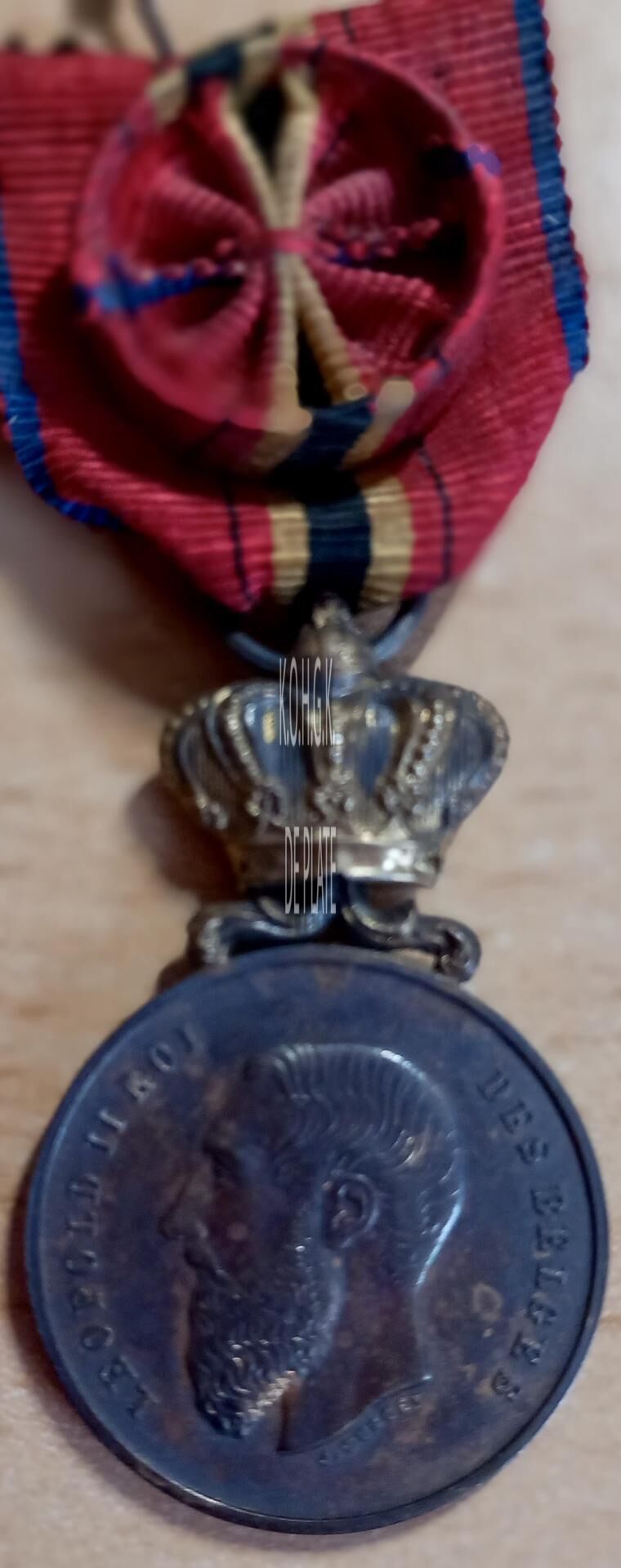 Op de voorzijde : centraal het hoofd van koning Leopold II in profiel naar links gericht, rondom links LEOPOLD II ROI, rondom rechts DES BELGES, gesigneerd rechts onder de afsnede J. WURDEN