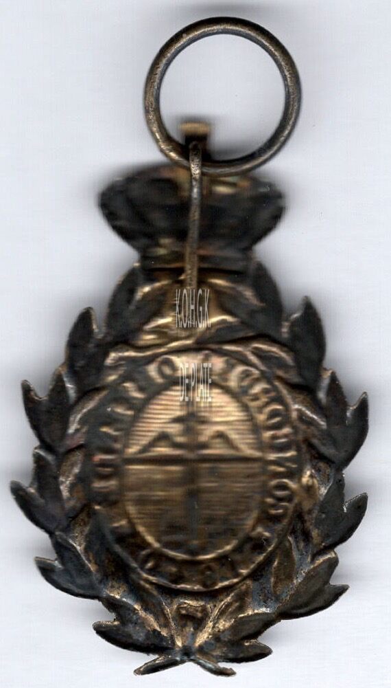 De gedenkpenning is ovaal van vorm met een kroon en ring, en is als volgt ingegraveerd: