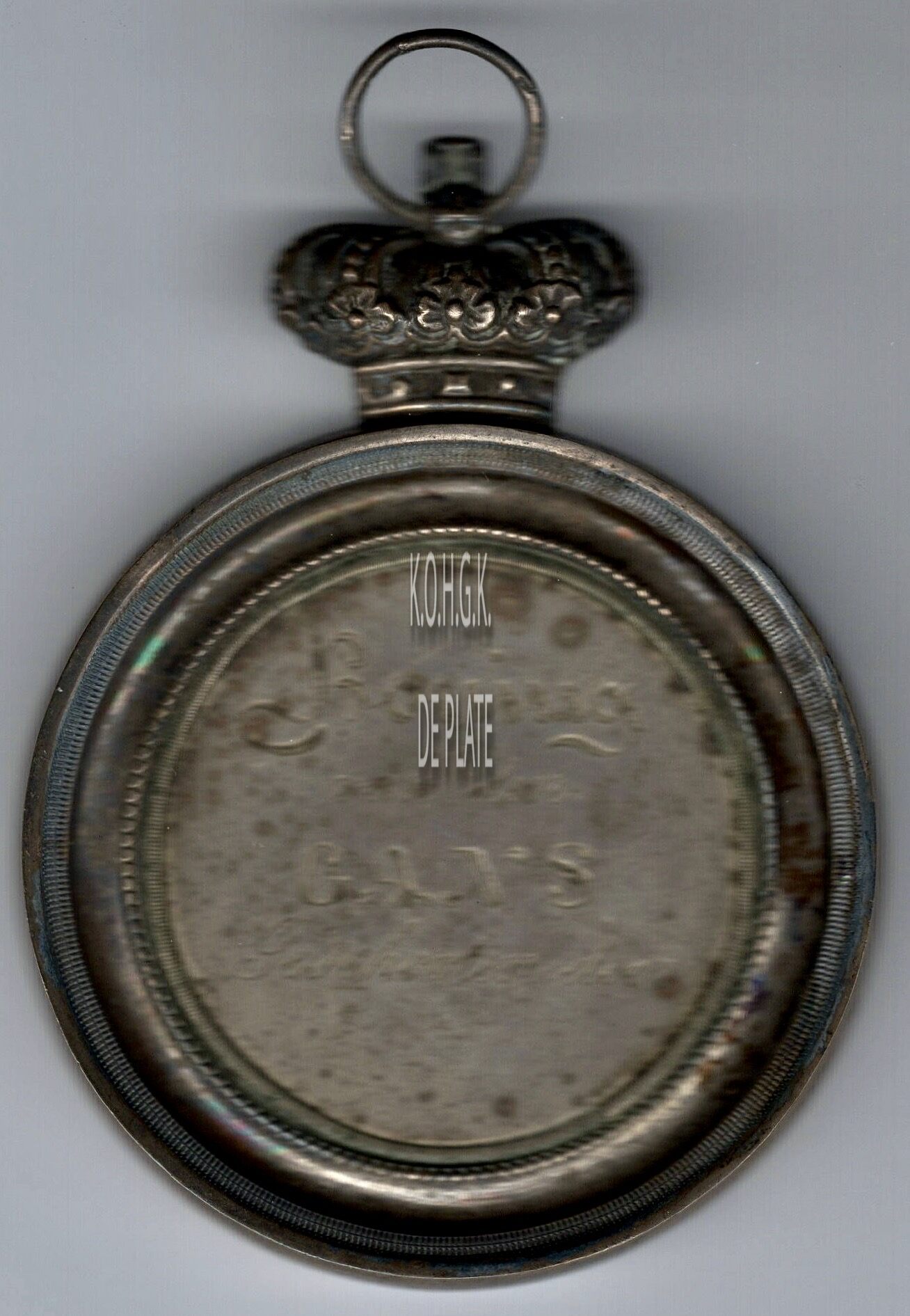De prijspenning is rond van vorm in een vatting met gladde geprofileerde buitenrand, en parel binnenrand, met kroon en draagring, en is als volgt ingegraveerd: