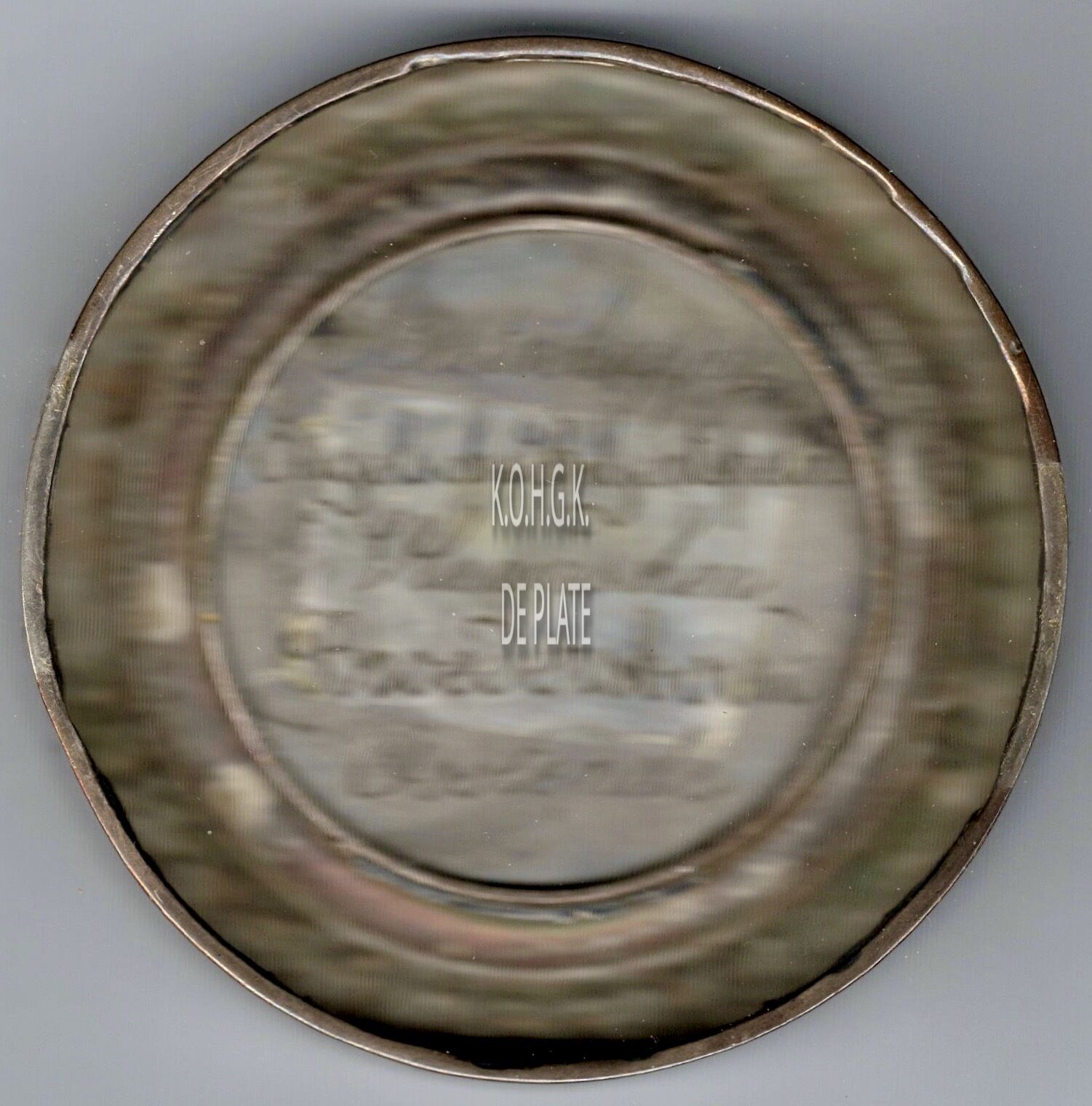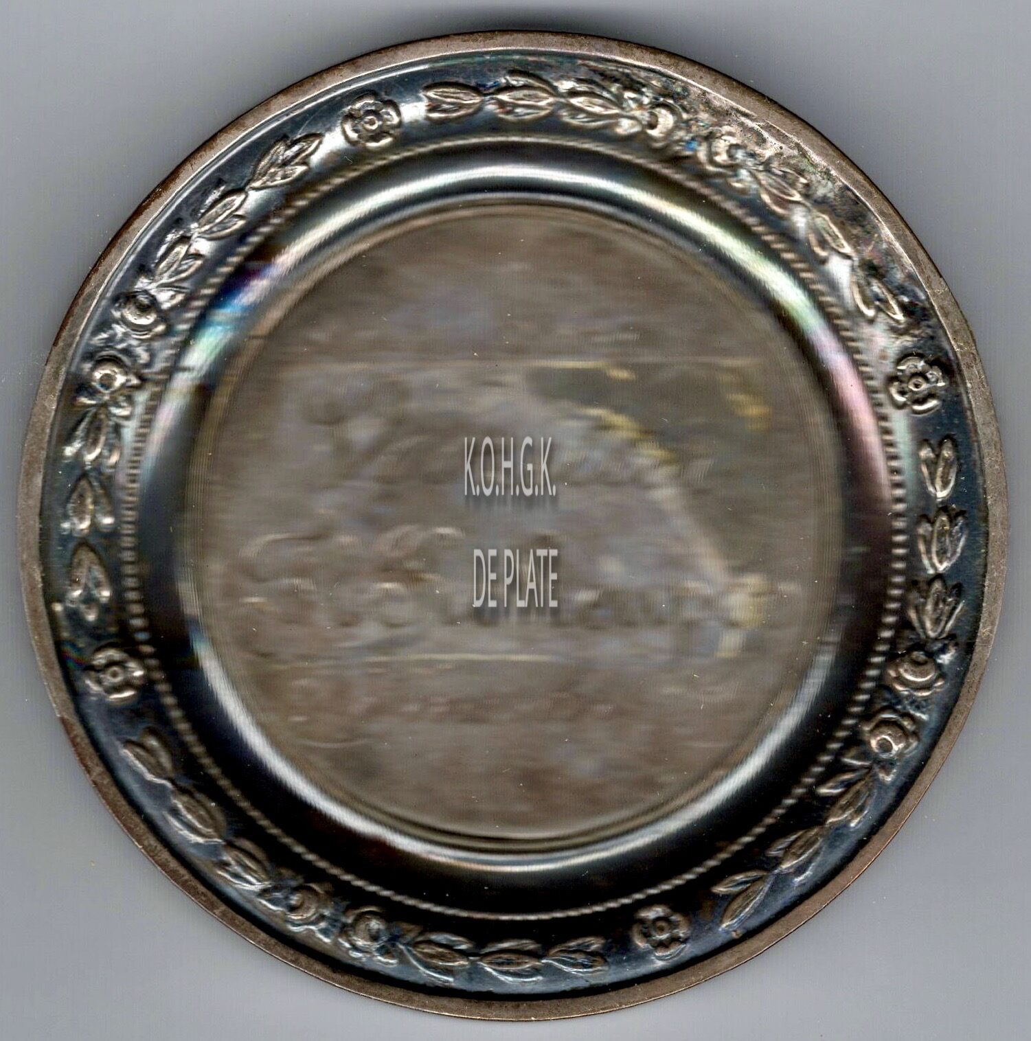 De gedenkpenning is rond met gladde rand in een vatting met versierde rand op de keerzijde, en is als volgt ingegraveerd