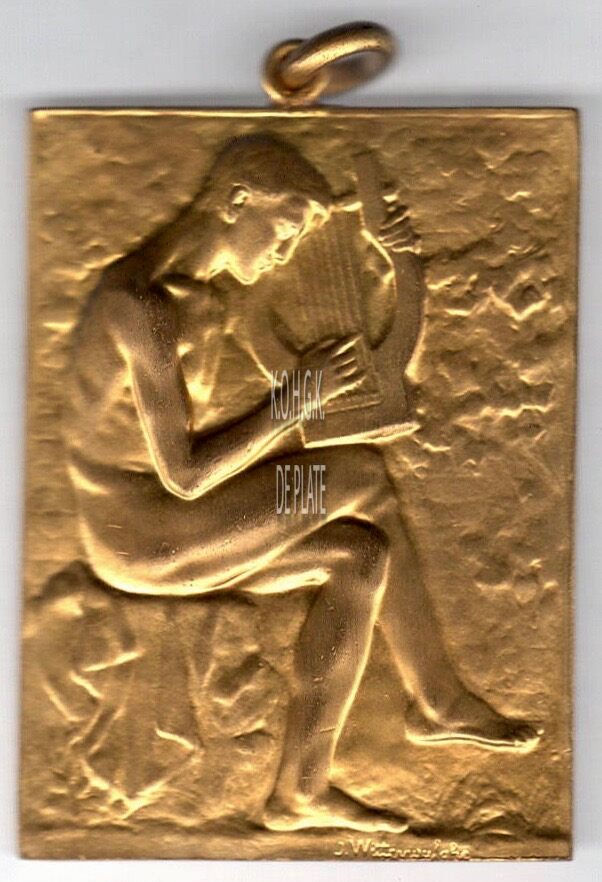 Op de voorzijde : een naakte zittende man naar rechts gericht voorstellende Orpheus spelend op zijn lier, onderaan rechts gesigneerd J. WITTERWULGHE