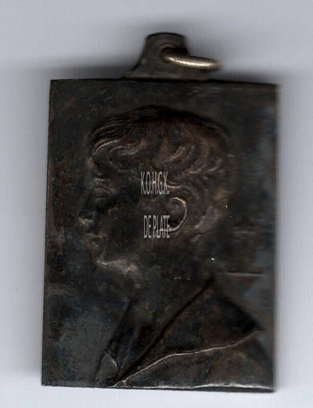 De penning is rechthoekig met gladde rand, oog en ring, en is als volgt ingegraveerd: