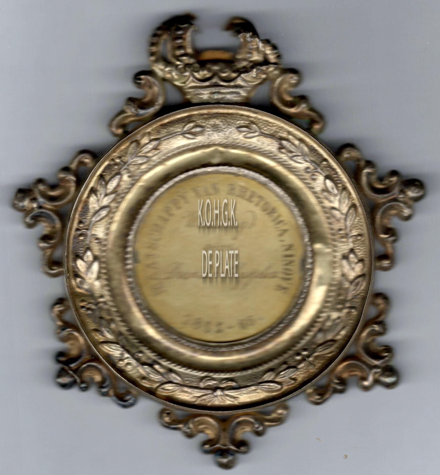 Op de keerzijde : rondom MAATSCHAPPY VAN RHETORICA, NINOVE, centraal horizontaal WEDSTRIJD / VOOR / DRAMAS EN BLIJSPELEN, rondom onder 1865-66.