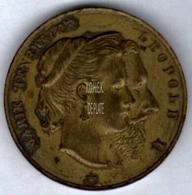 Op de voorzijde : rondom links MARIE HENRIETTE, rechts LEOPOLD II, centraal een afbeelding van de hoofden van Leopold II en Maria Hendrika naar rechts gericht.