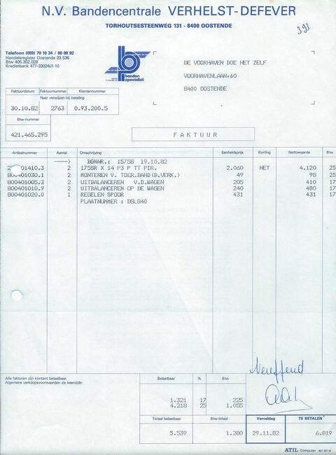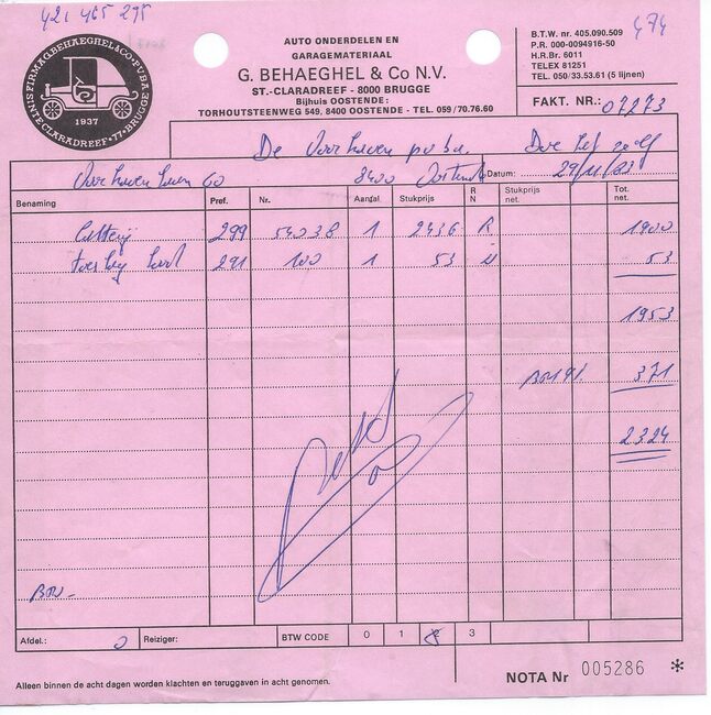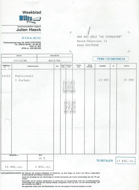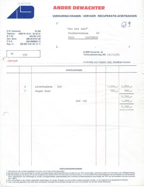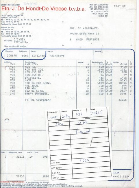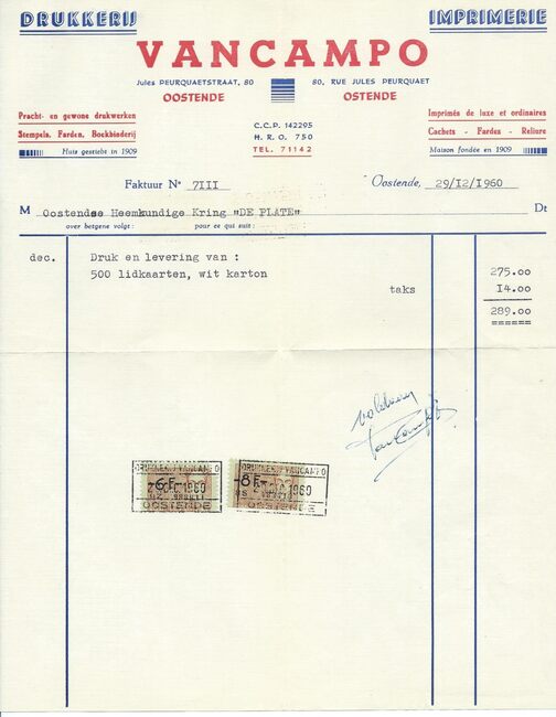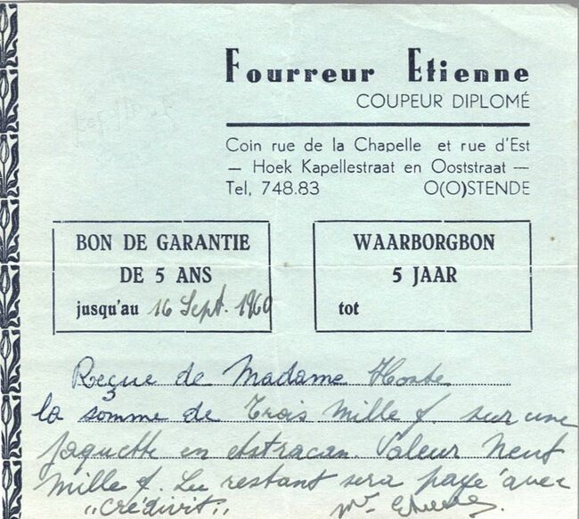 De zaak was gevestigd op de hoek van de Kapellestraat en de Ooststraat. De bon was geldig tot 16/09/1960