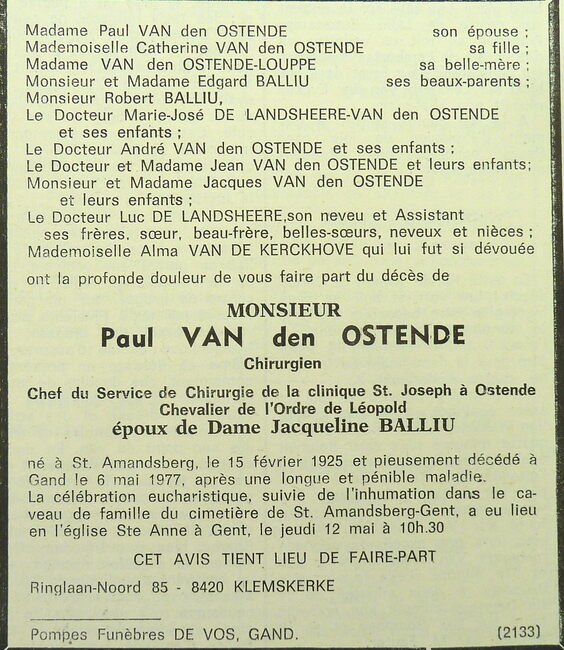 VAN DEN OSTENDE PAUL (1925-1977) (CHIRURG)