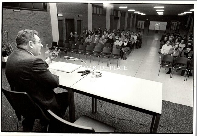 Formaat : 18 x 24 cm. - Persconferentie in de luchthaven naar aanleiding van een uitzending in "Panorama" © J.J. Soenen