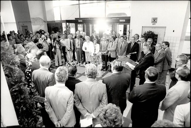 Formaat : 10 x 15 cm. - was voor 2000 gevestigd in het Feest- en Cultuurpalais op de eerste verdieping. Jan Dreesen geeft uitleg aan de bezoekers