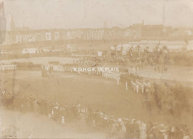 Formaat : 16 x 22 cm. Militaire parade tijdens de inhuldiging