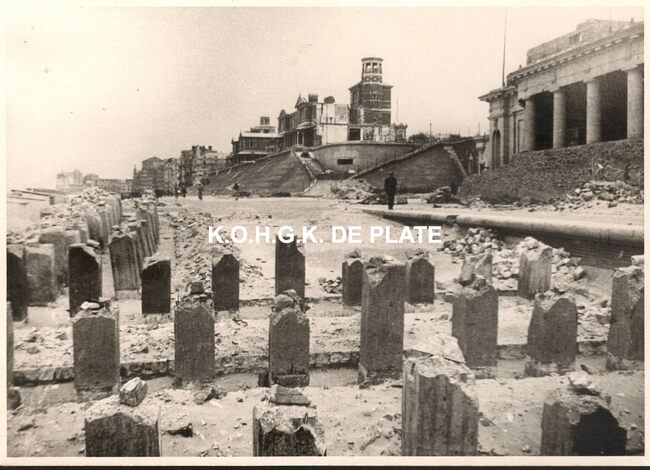 Formaat : 17 x 24 cm. - Vooraan trampsporen op de Torhoutsesteenweg. Op de hoek rechts van de Nieuwpootsesteenweg "Le Chatelêt"