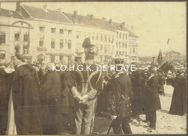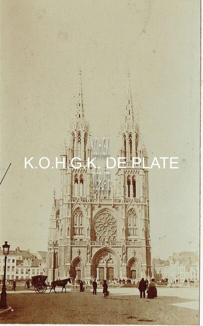 Formaat : 8 x 12 cm. - Naar het ontwerp van architect J. De Langhe en gebouwd door aannemer Ed. Brys. De inwijding gebeurde op 29 augustus 1911.