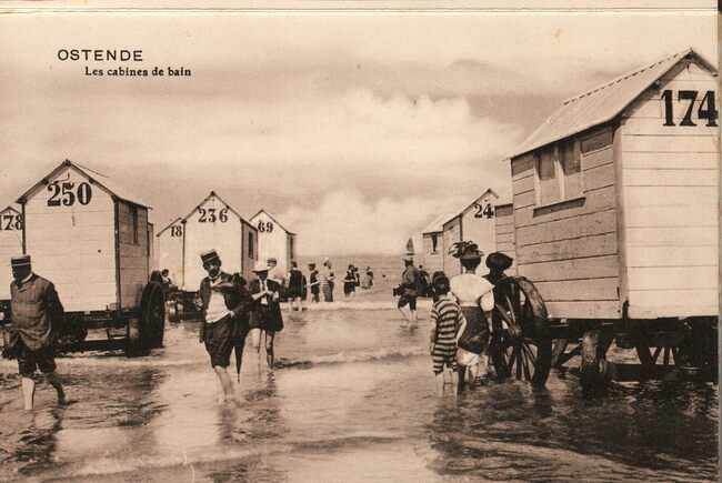 Edit. V.G.[Victor Grégoire], 42, Avenue du Midi, Bruxelles. - Ostende - Les cabines de bain. - De badkarren. Postkaartenboekje : Souvenir d'Ostende Victor Grégoire