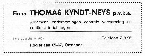 Advertentie : Firma Thomas Kyndt-Ney[t]s pvba. Rogierlaan 65-67 Oostende