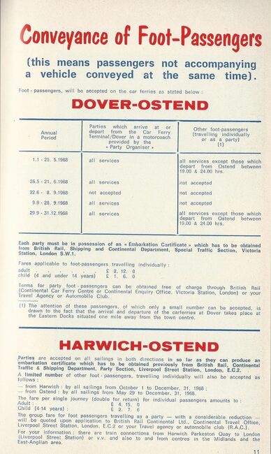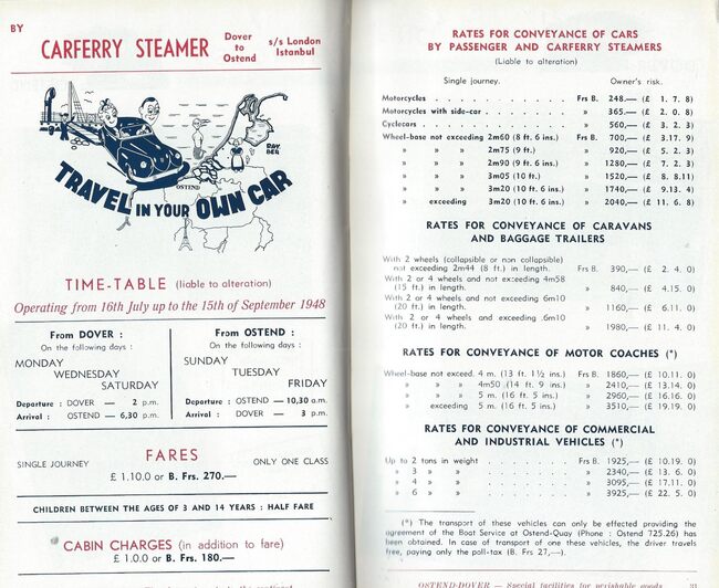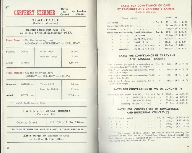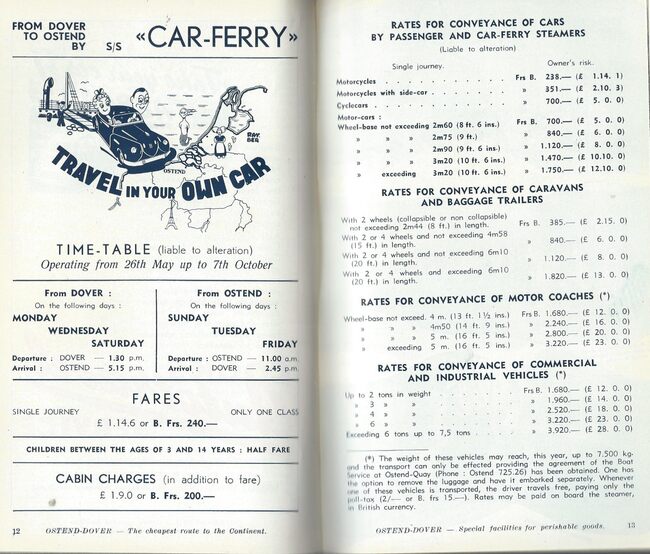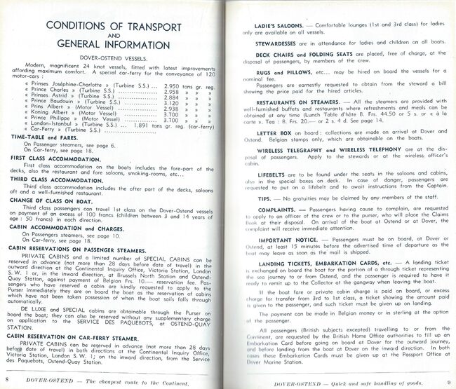 Dover - Ostend. Belgian car-ferry services. Bevat : hotellijst alfabetisch per gemeente of stad