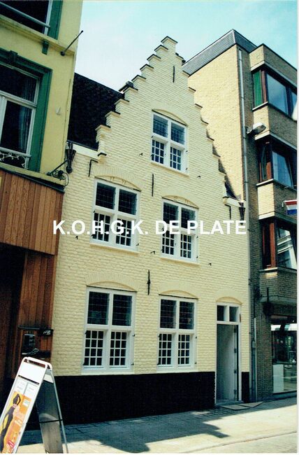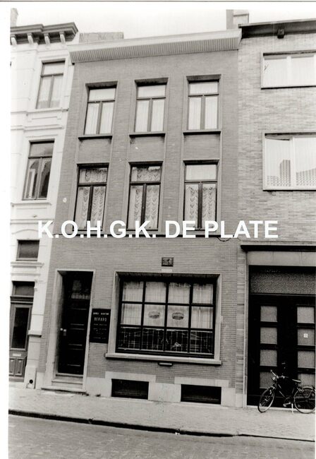 Formaat : 12 x 9 cm. - Huis van Julien Berard, de vroegere woonst van kunstschilder Jan De Clerck in de Edith Cavellstraat 4. De gedenkplaat werd boven het venster geplaatst op 24/10/1987.