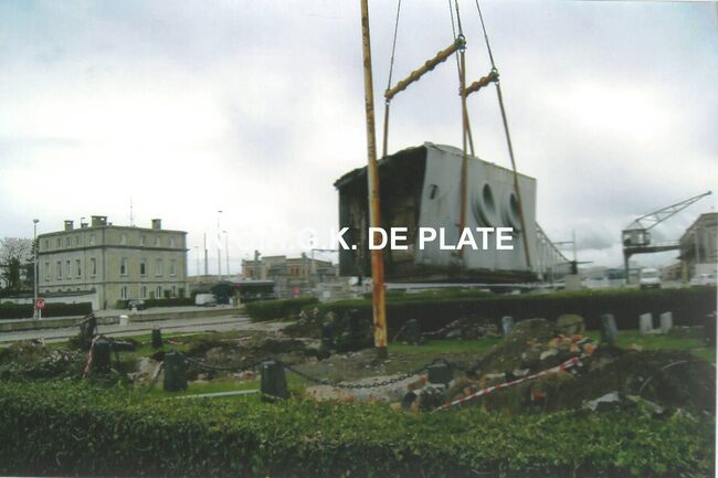 Afdruk. - Formaat : 14 x 19 cm. - Eén van de beelden van het Monument voor de Zeelieden dat in de loop van 1953 opgetrokken werd.