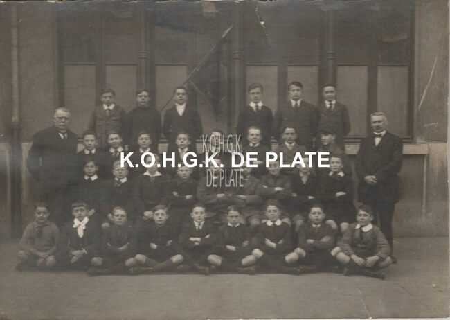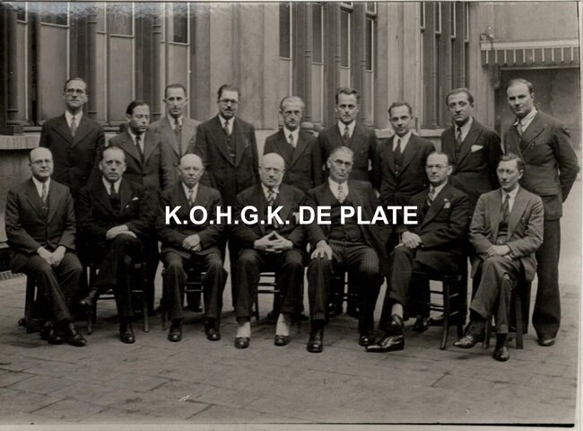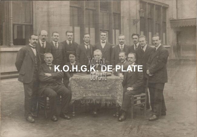 Staand v.l.n.r.: dhrn. Descamps, Verleye, De Keyser, Van Wynsberghe, Vanhecke, Caenen,…