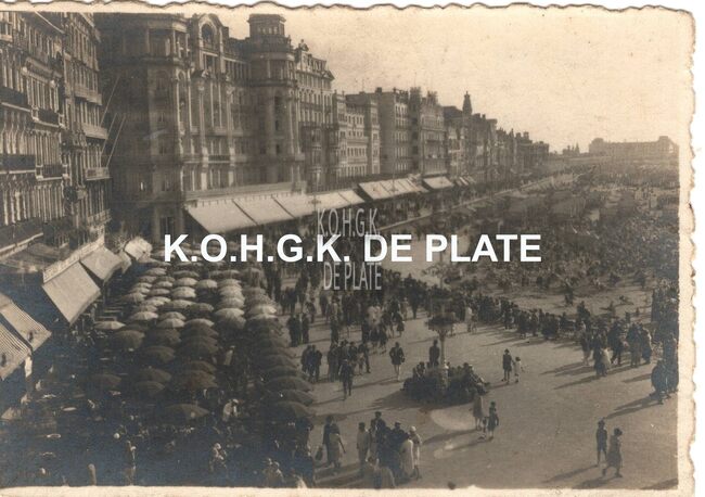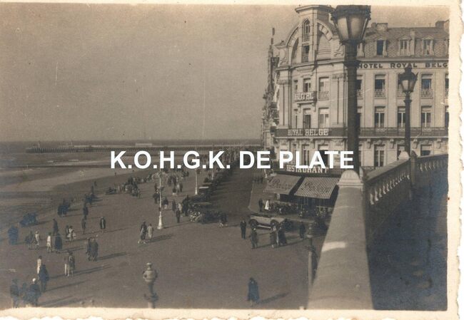 Foto : 5,5 x 8 cm. De Zeedijk vanaf de kursaal richting havengeul. Op de hoek met de Oosthelling-Kursaal het "Hôtel Royal Belge".