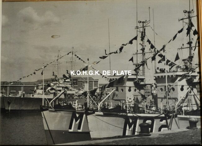 Formaat : 28,5 x 38,5 cm. - Mijnenvegers van de Zeemacht in de haven van Oostende