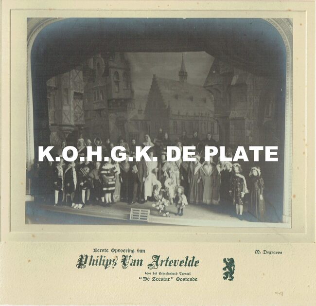 Formaat 16,5 x 21 cm. - Groepsfoto : De eerste opvoering van het toneelstuk "Philips van Artevelde" door het Nederlandsch toneel 'De Zeestar' Oostende.