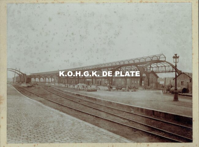 Formaat : 18 x 24 cm. - Gare d'Ostende- Quai - Troittoirs couverts Vue d'Ensemble de la partie métalique/face coté chenal)