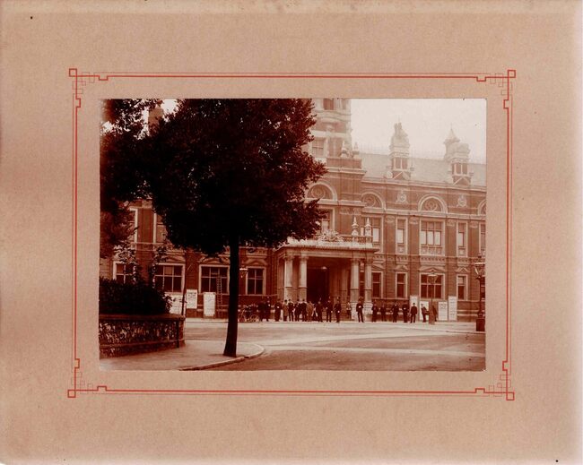 Formaat : 21 x 28 cm. - Foto, naar aanleiding van het 25 jarig bestaan van de kinderkribbe 1888-1913. - In 1891 liet Louis Delbouille in de Londenstraat (thans nr. 5) door architect Antoine Dujardin het huis "Fernand…