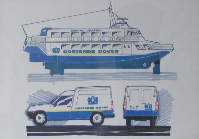 Affiche in kader, formaat : 71 x 102.Oostende lines Prins Filip.oostende ramsgate oostende