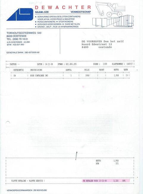 Factuur van het huis P. Tavernier-Barremaecker, alle slach van glas- gleiers- en keukengerief. Alfons Pieterslaan 76 Oostende.