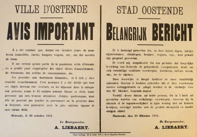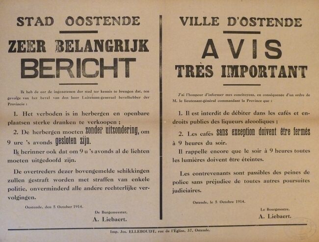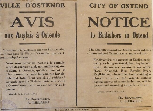 Tekstaffiche : Ville d’Ostende : Avis aux Anglais à Ostende = City of Ostend : Notice to Britishers in Ostend