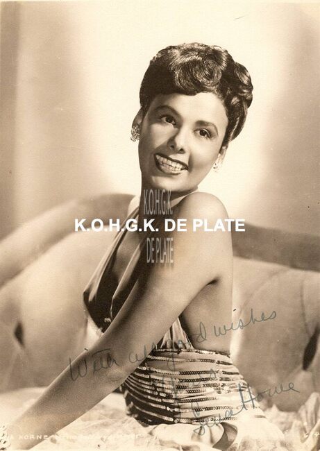 Formaat : 17 x 12,5 cm. - Gesigneerde foto naar aanleiding van haar optreden.
