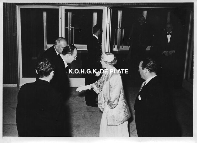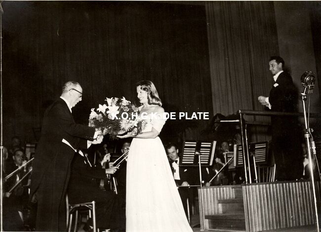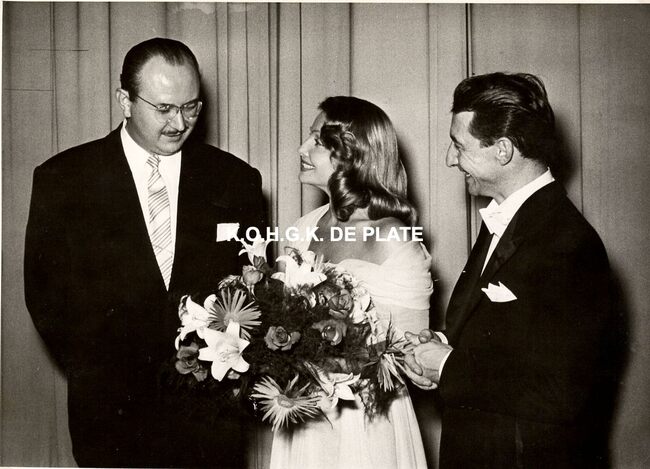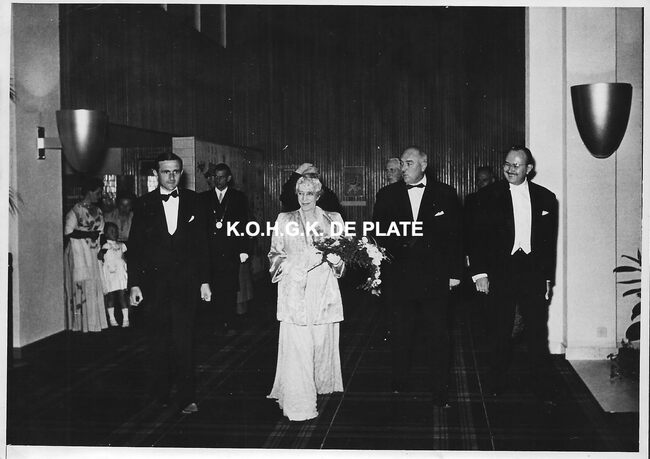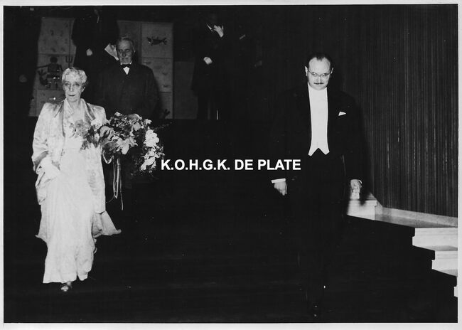 FOTO MICHAEL (HENDRIK SERRUYSLAAN)ELISABETH (KONINGIN DER BELGEN) (1876-1965)MENUHIN YEHUDI (1916-1999) (VIOLIST DIRIGENT)QUAGHEBEUR MAURICE CHARLES (1911-1975) (NOTARIS SCHEPEN)CAETANI GIOVANELLA (1875-1971) (HOFDAME VAN KONINGIN ELISABETH)VAN GLABBEKE ADOLPHE (1904-1959) (BURGEMEESTER)CASINO-KURSAAL ; CONCERTENMUZIEK ; CONCERTEN