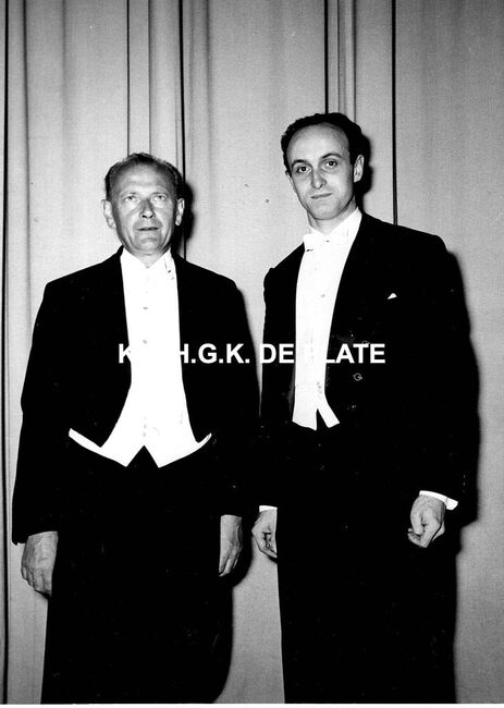 Formaat : 18 x 13 cm. - Links, Karl Delseit (piano) en Pierre d'Archambeau (viool)